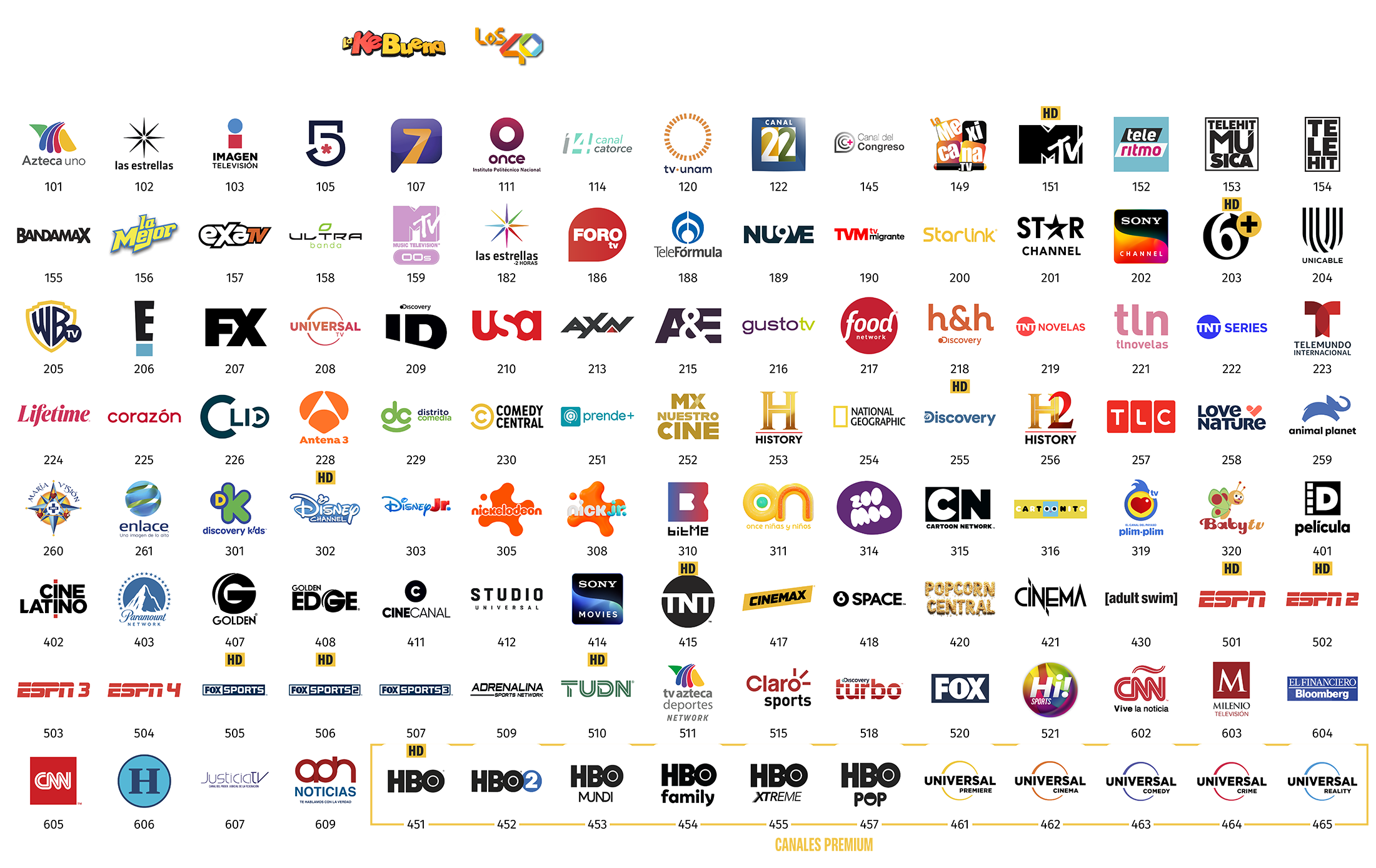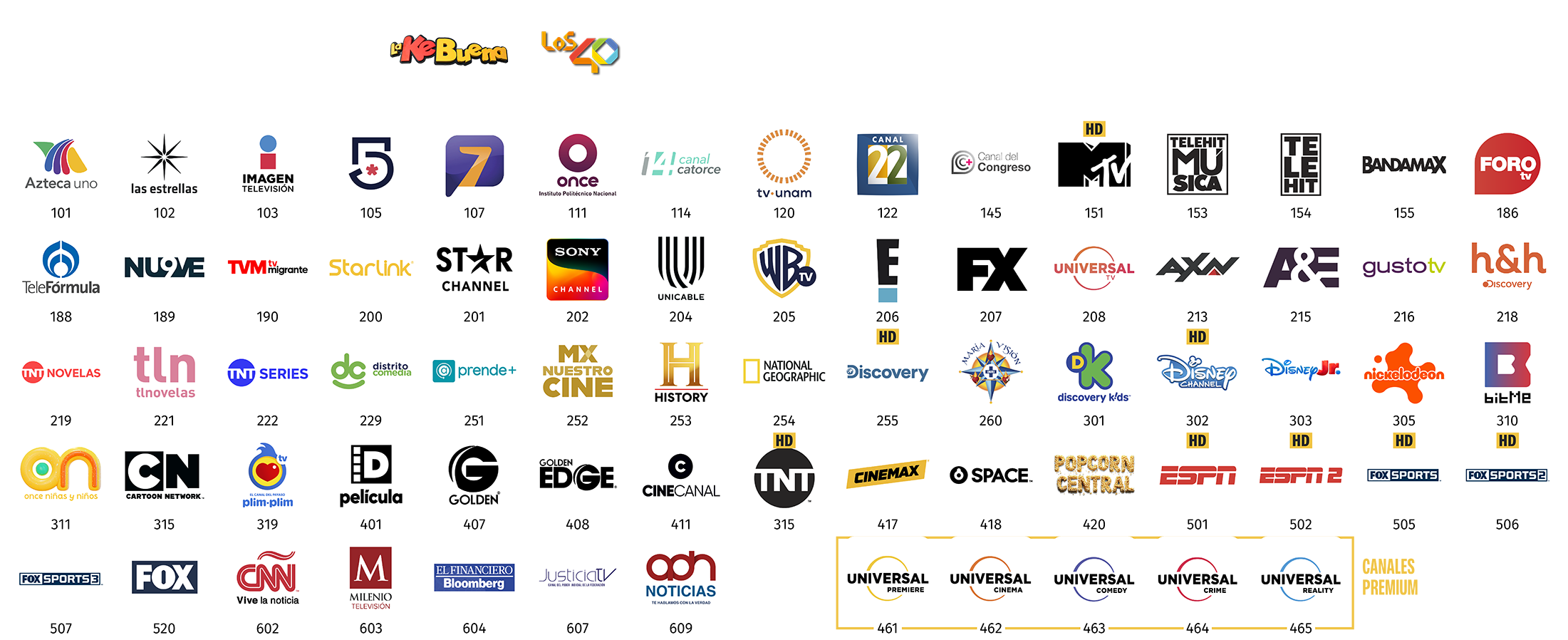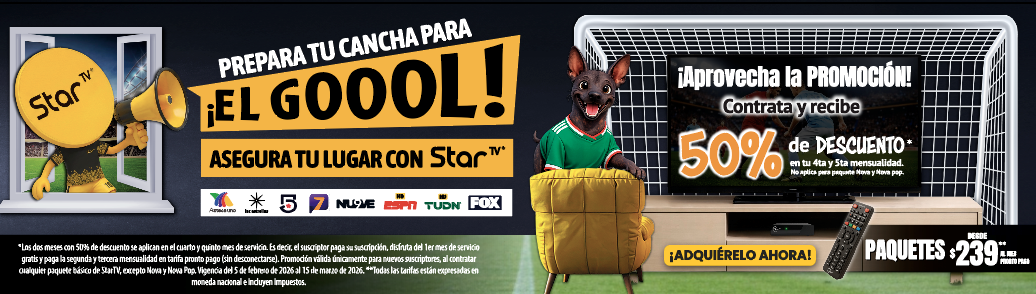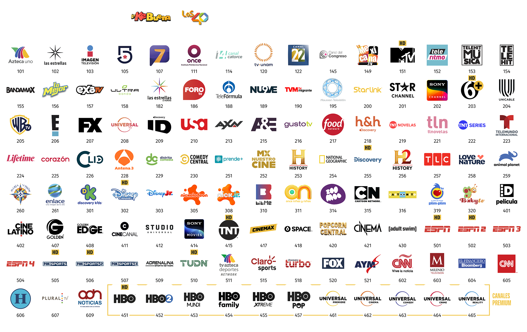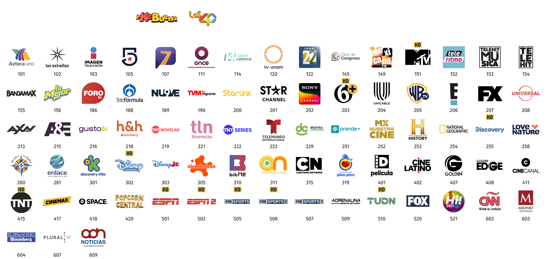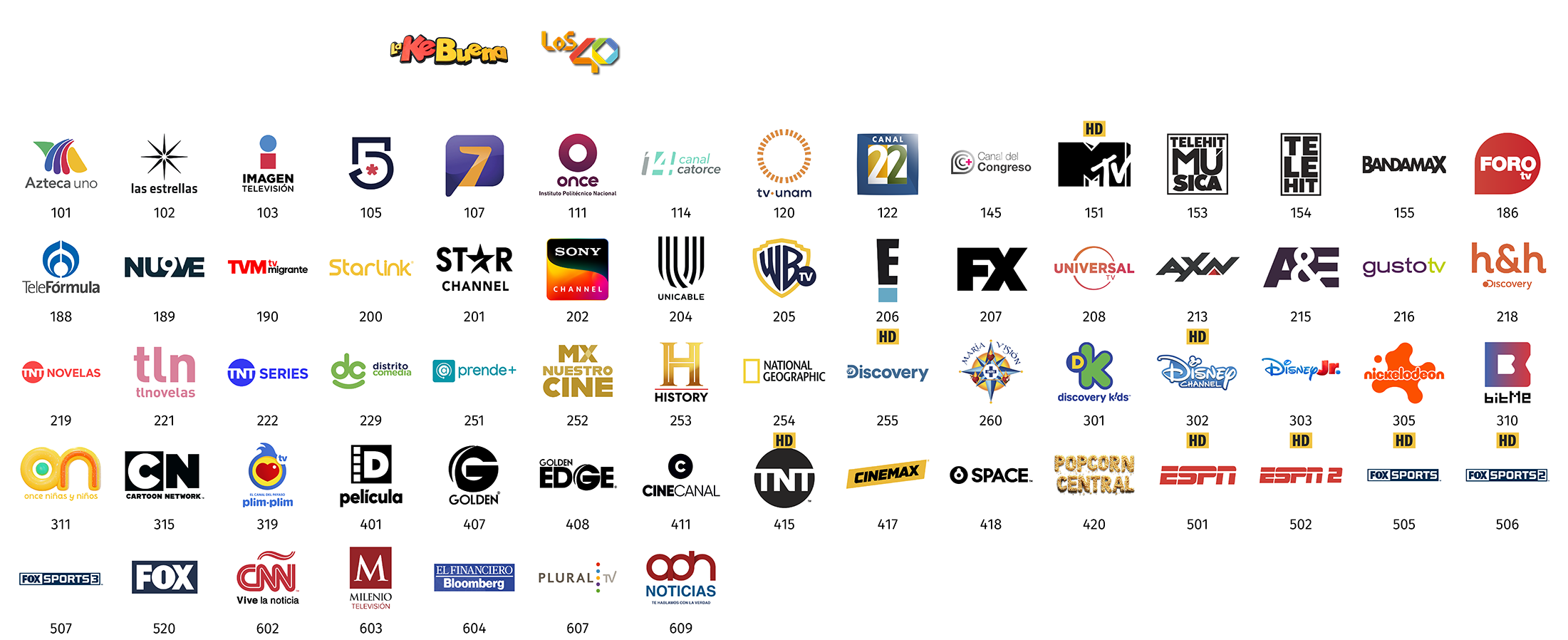 **Todos los paquetes básicos de StarTV incluyen, sin costo adicional, los canales de televisión abierta (radiodifundidos) con cobertura de 50% o más del territorio nacional y de las Instituciones Públicas Federales, mismos que se retransmiten de manera gratuita, íntegra, no discriminatoria, sin modificaciones, y con la mayor definición de imagen y sonido que la red satelital de StarTV es capaz de transmitir, y acorde a las distintas características de los decodificadores que entrega en arrendamiento a sus suscriptores.