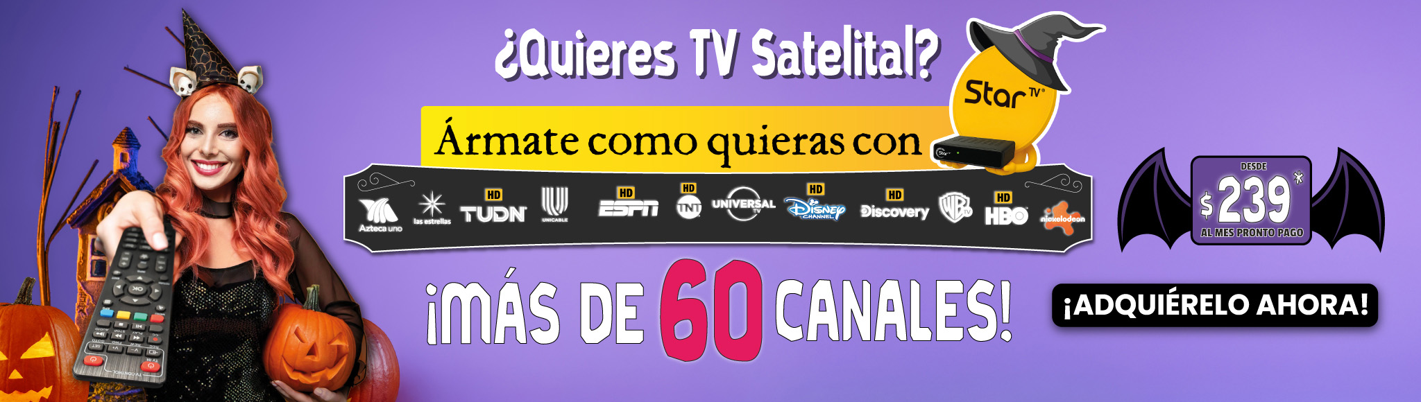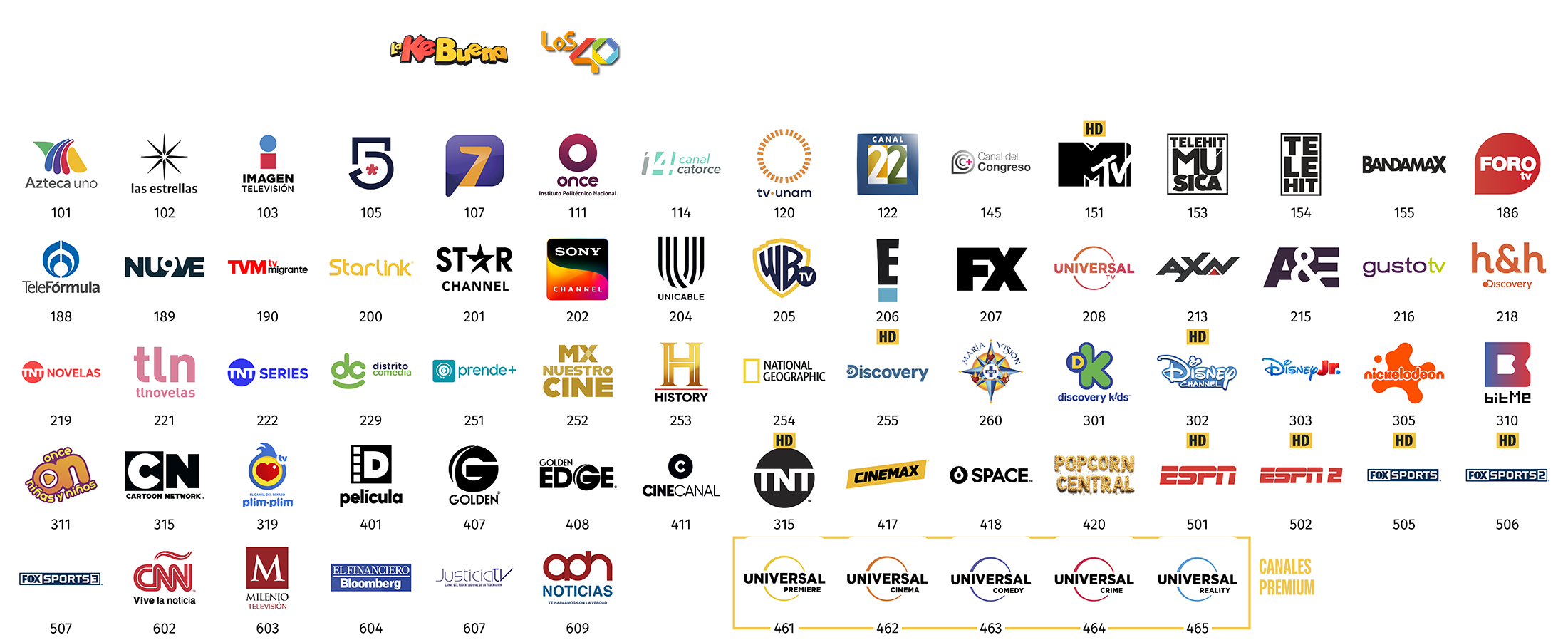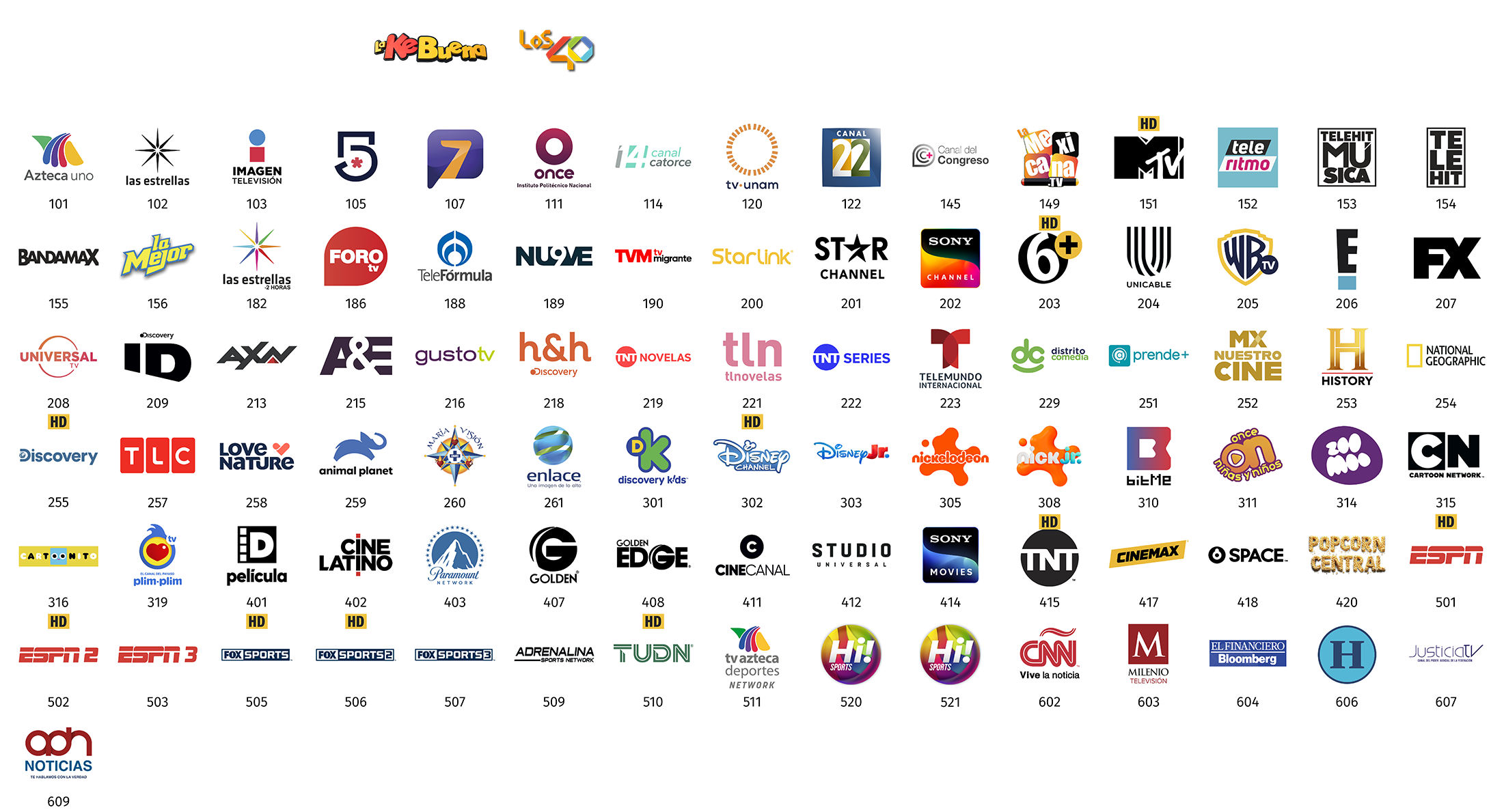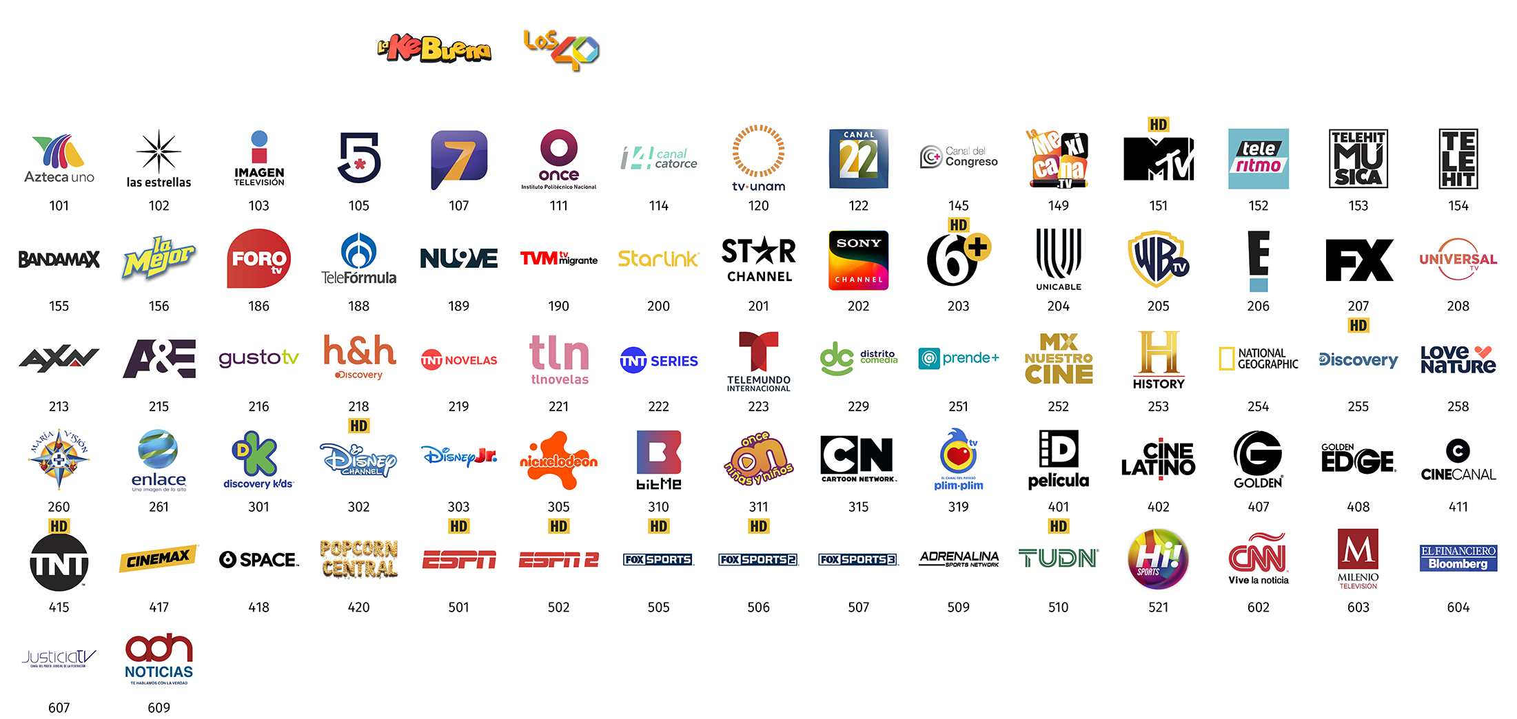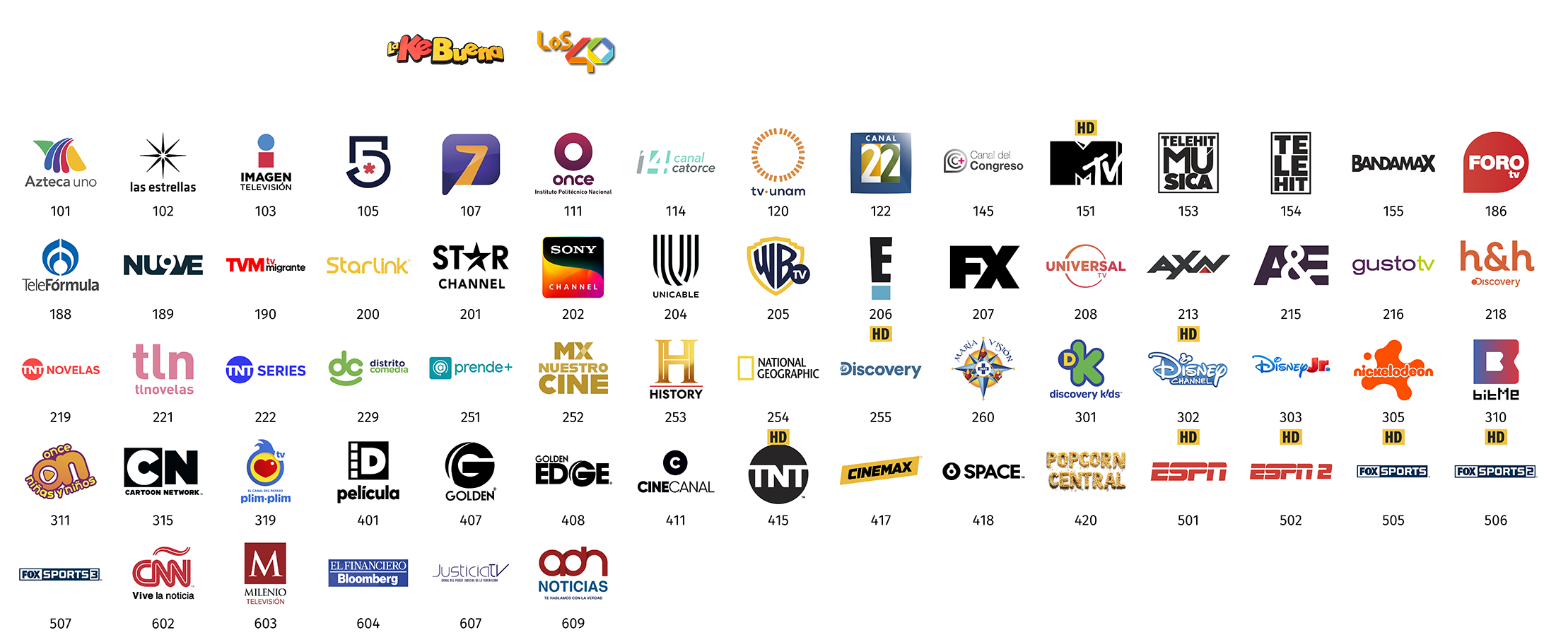**Todos los paquetes básicos de StarTV incluyen, sin costo adicional, los canales de televisión abierta (radiodifundidos) con cobertura de 50% o más del territorio nacional y de las Instituciones Públicas Federales, mismos que se retransmiten de manera gratuita, íntegra, no discriminatoria, sin modificaciones, y con la mayor definición de imagen y sonido que la red satelital de StarTV es capaz de transmitir, y acorde a las distintas características de los decodificadores que entrega en arrendamiento a sus suscriptores.