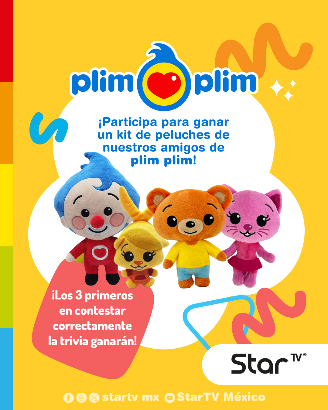Si eres suscriptor de StarTV, participa y GANA uno de los 3 kits de peluches PLIM PLIM, contesta la trivia de manera correcta ¡Participa ahora! tienes hasta el 5 de septiembre del 2025.