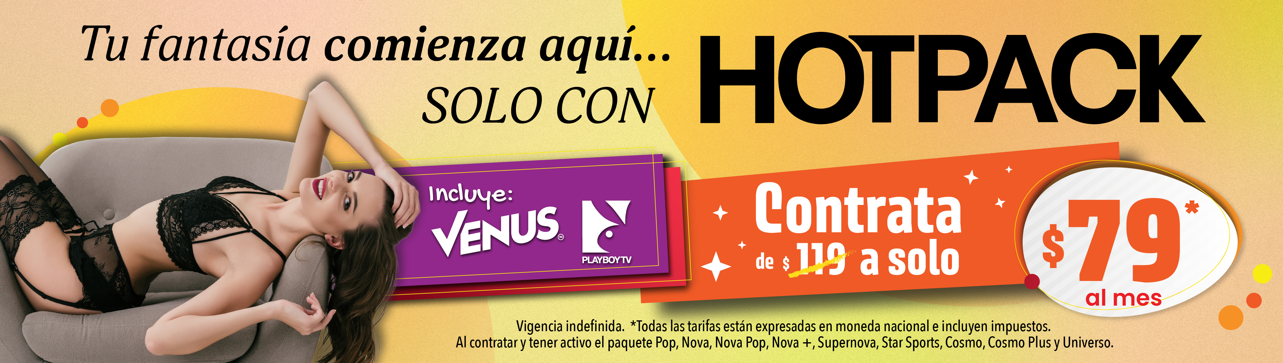 Solo necesitas ser suscriptor activo de los paquetes básicos Pop, Nova, Nova Pop, Nova+, Supernova o Cosmo, Cosmo Plus, Star Sports o Universo, llenar tus datos y dar clic en aceptar para que disfrutes de todo el contenido de Hot Pack $79.00 AL MES.
