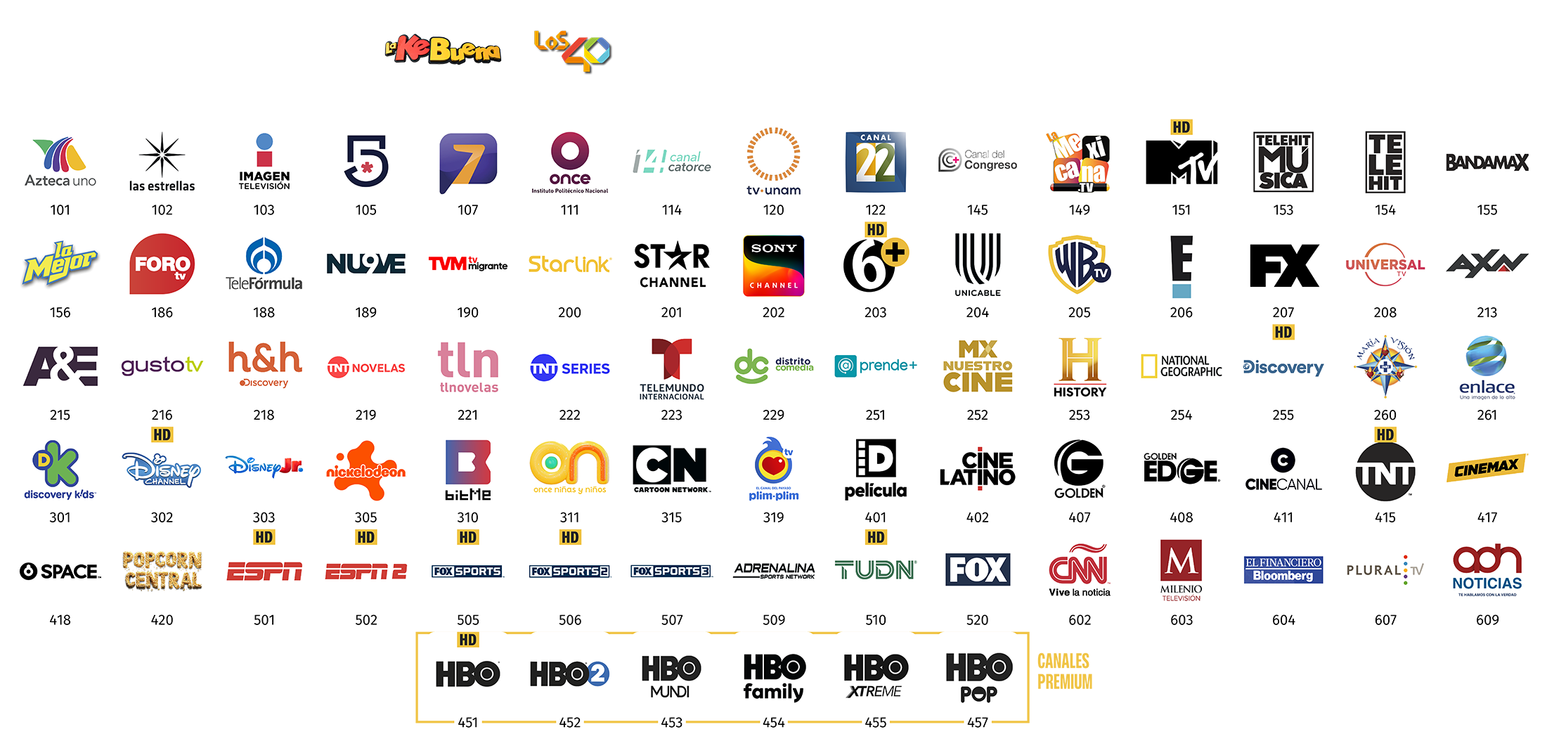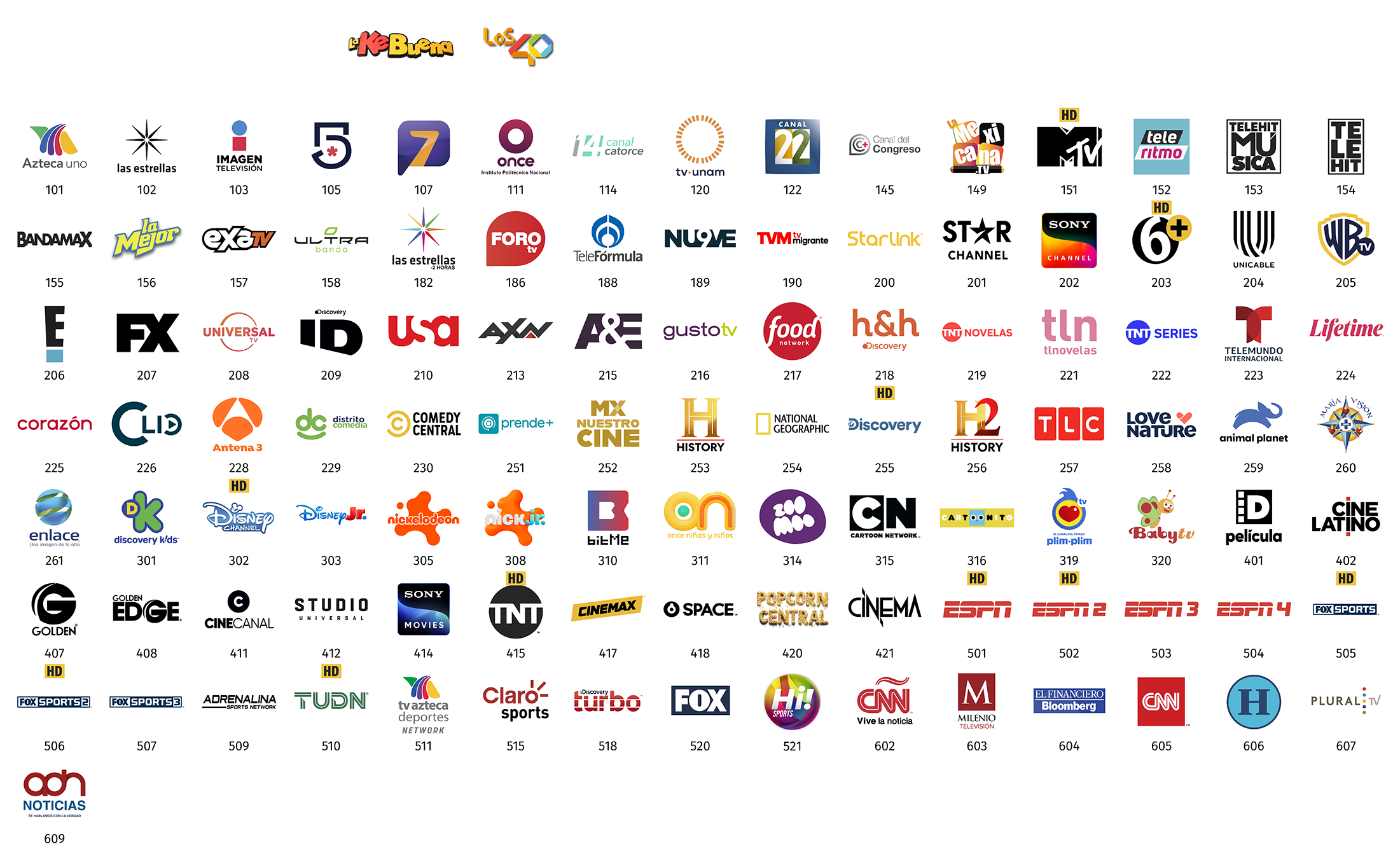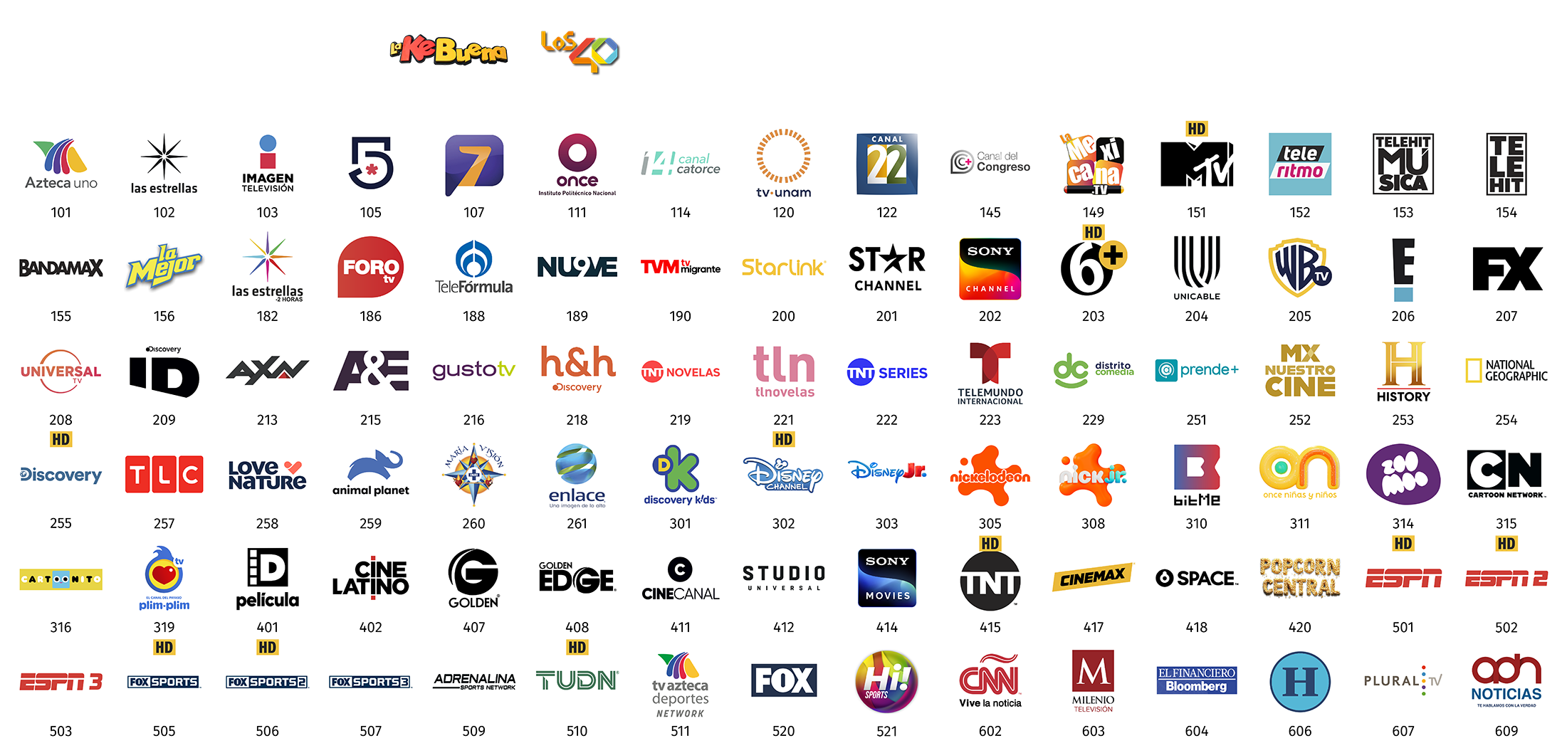 **Todos los paquetes básicos de StarTV incluyen, sin costo adicional, los canales de televisión abierta (radiodifundidos) con cobertura de 50% o más del territorio nacional y de las Instituciones Públicas Federales, mismos que se retransmiten de manera gratuita, íntegra, no discriminatoria, sin modificaciones, y con la mayor definición de imagen y sonido que la red satelital de StarTV es capaz de transmitir, y acorde a las distintas características de los decodificadores que entrega en arrendamiento a sus suscriptores.